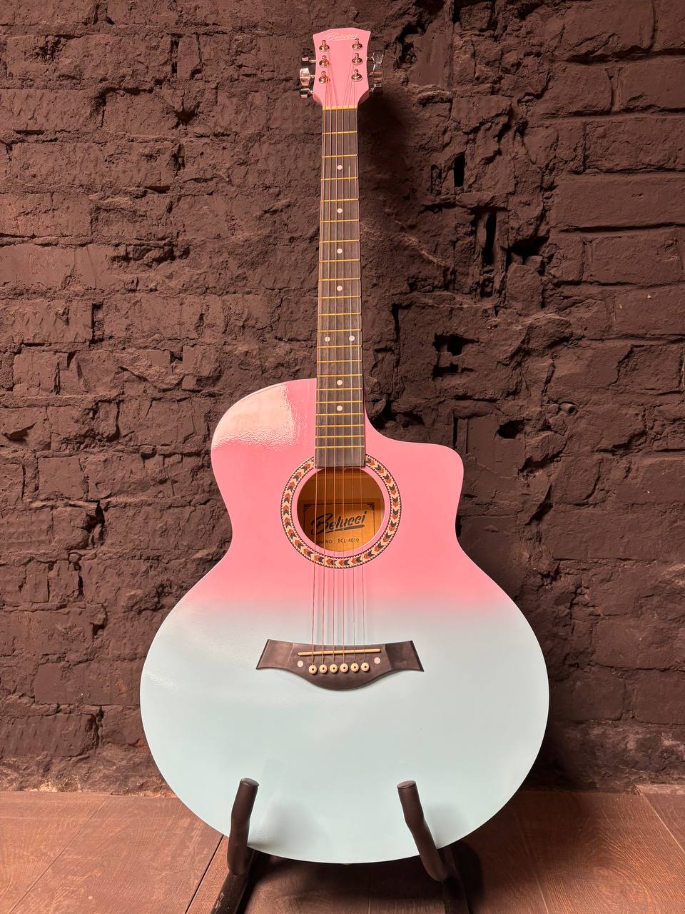 Гитара сразу бросается в глаза за счет интересного градиентного цвета, смотрится очень красивоЧитать полностью